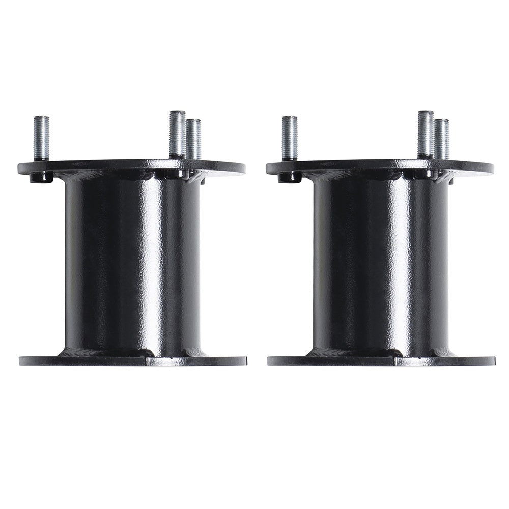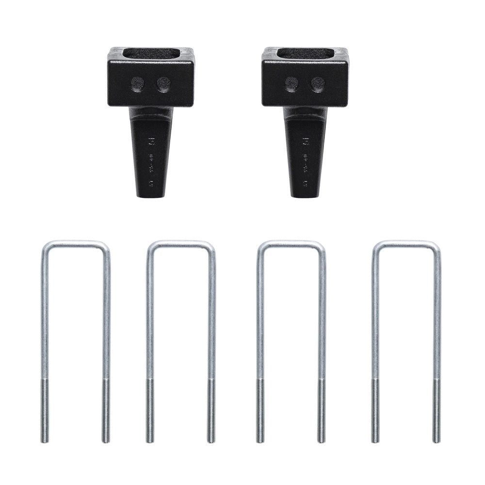- Rear lift blocks and u-bolts lift the rear of the vehicle to match the front and maintain a level profile
